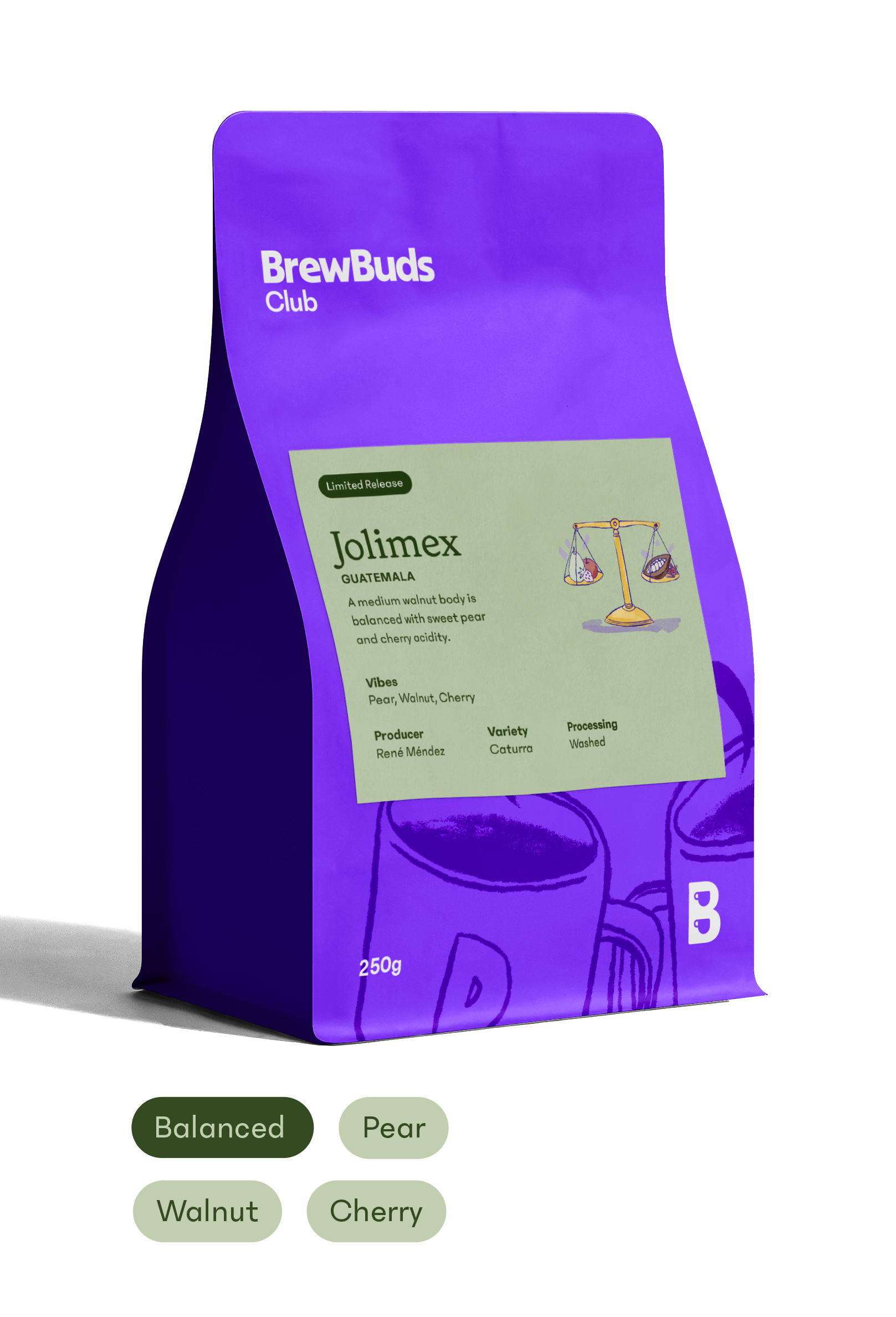 A medium walnut body is balanced with sweet pear and cherry acidity.